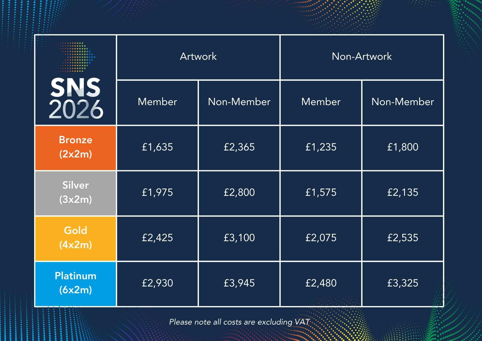 All exhibitors receive all access passes as part of their package. We also offer heavily discounted rates for any of your team members wishing to visit the event.